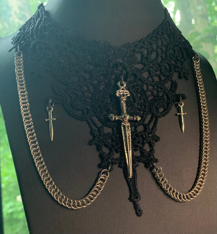Black lace and chain steampunk choker