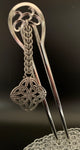 Straight hairpin with a stainless steel chainmail drop and Celtic knot pendant.
