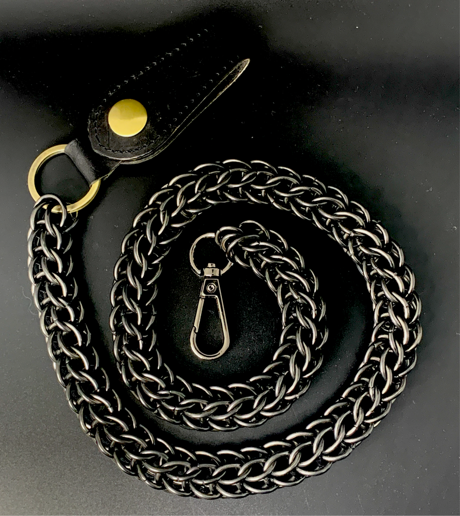 14 gauge blackened stainless steel rings were used to construct this sturdy Persian weave wallet chain. Chain measures 22.5 inches.